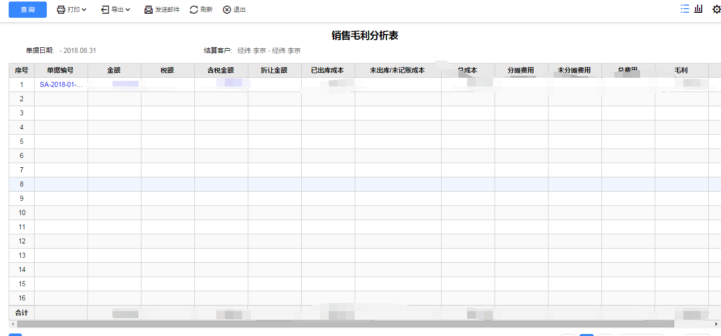 当财务做完产成品成本分配,销售人员做完销售费用分摊单后,可以查询该订单的毛利,如图: