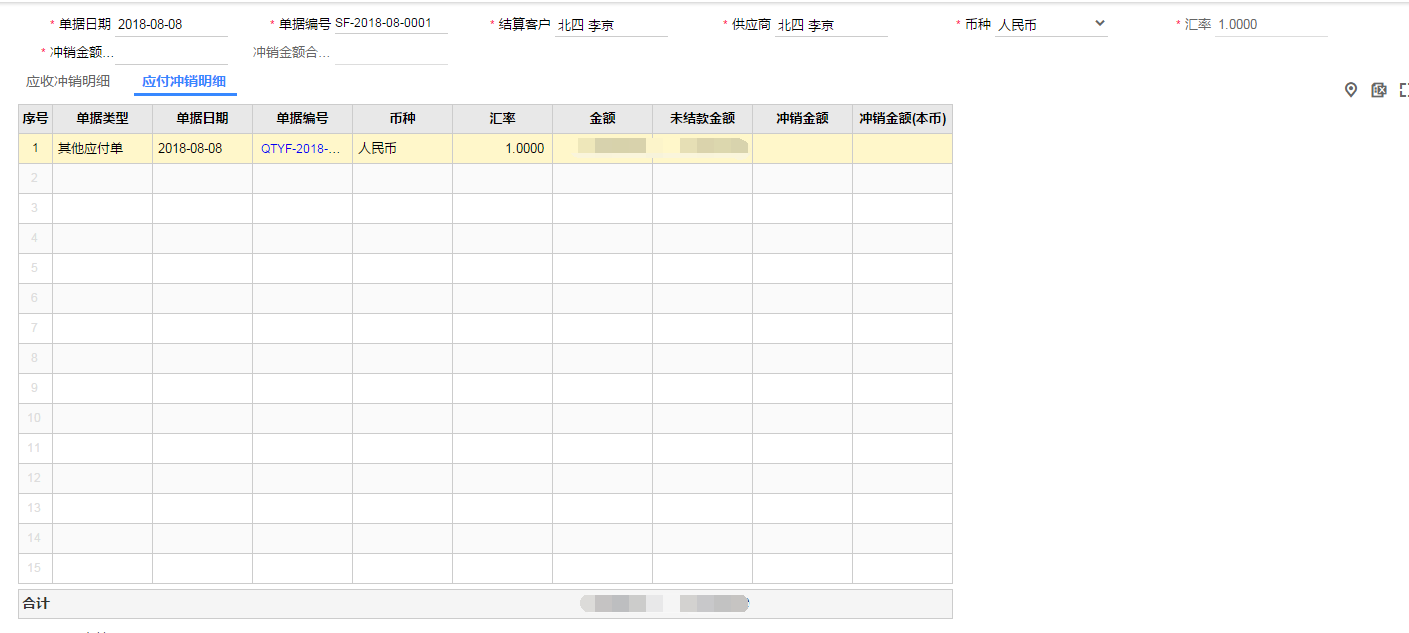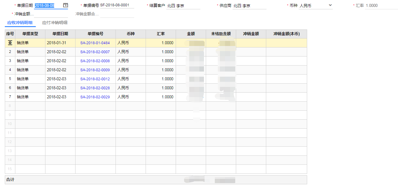 销售人员发货,在系统中做销货单后,在往来现金模块进行应付冲应收操作。选择装修返款的其他应付单,选择项目为装修返款的销货单,做核销处理如图:
